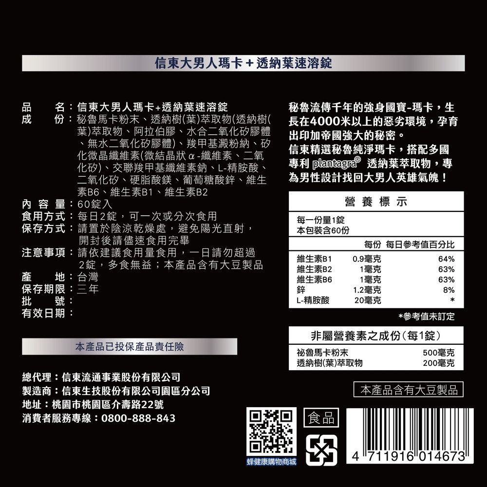 【1+1】信東大男人 瑪卡+透那葉速溶錠(60錠/盒)買一送一