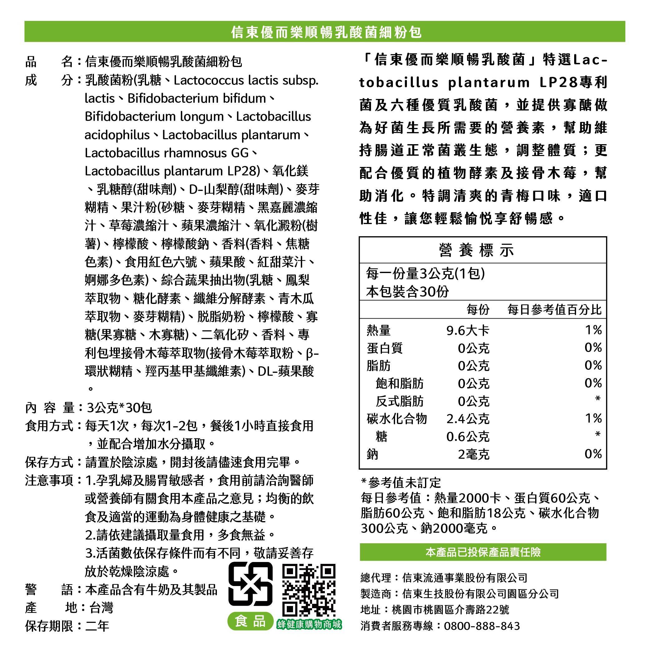 贈品-信東優而樂順暢乳酸菌(30包/盒)