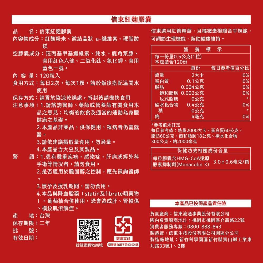 雙11限定【信東生技】紅麴膠囊(健字號)(120粒/盒)3入組