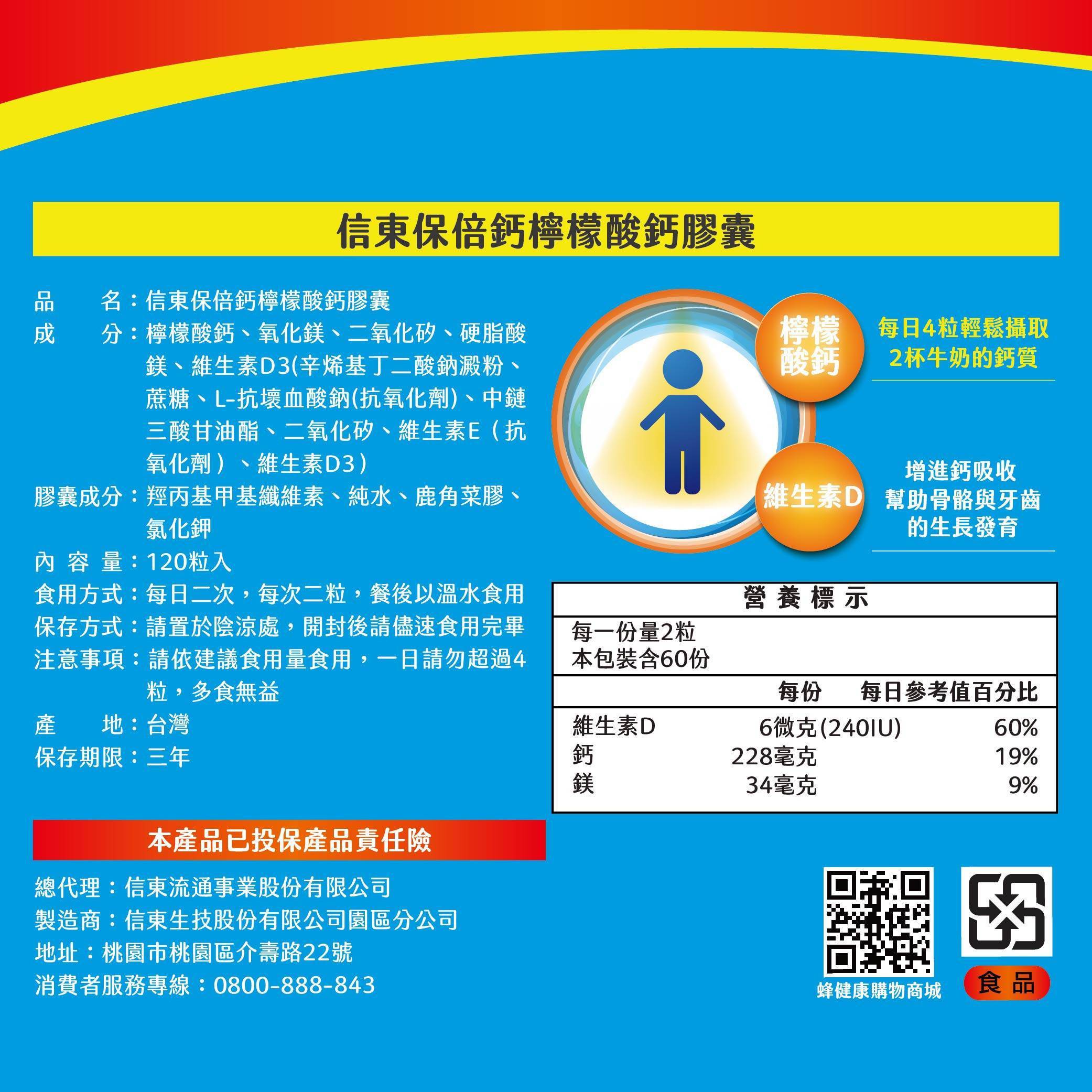 雙11限定【信東生技】保倍鈣檸檬酸鈣植物膠囊(120粒/盒) 4入組