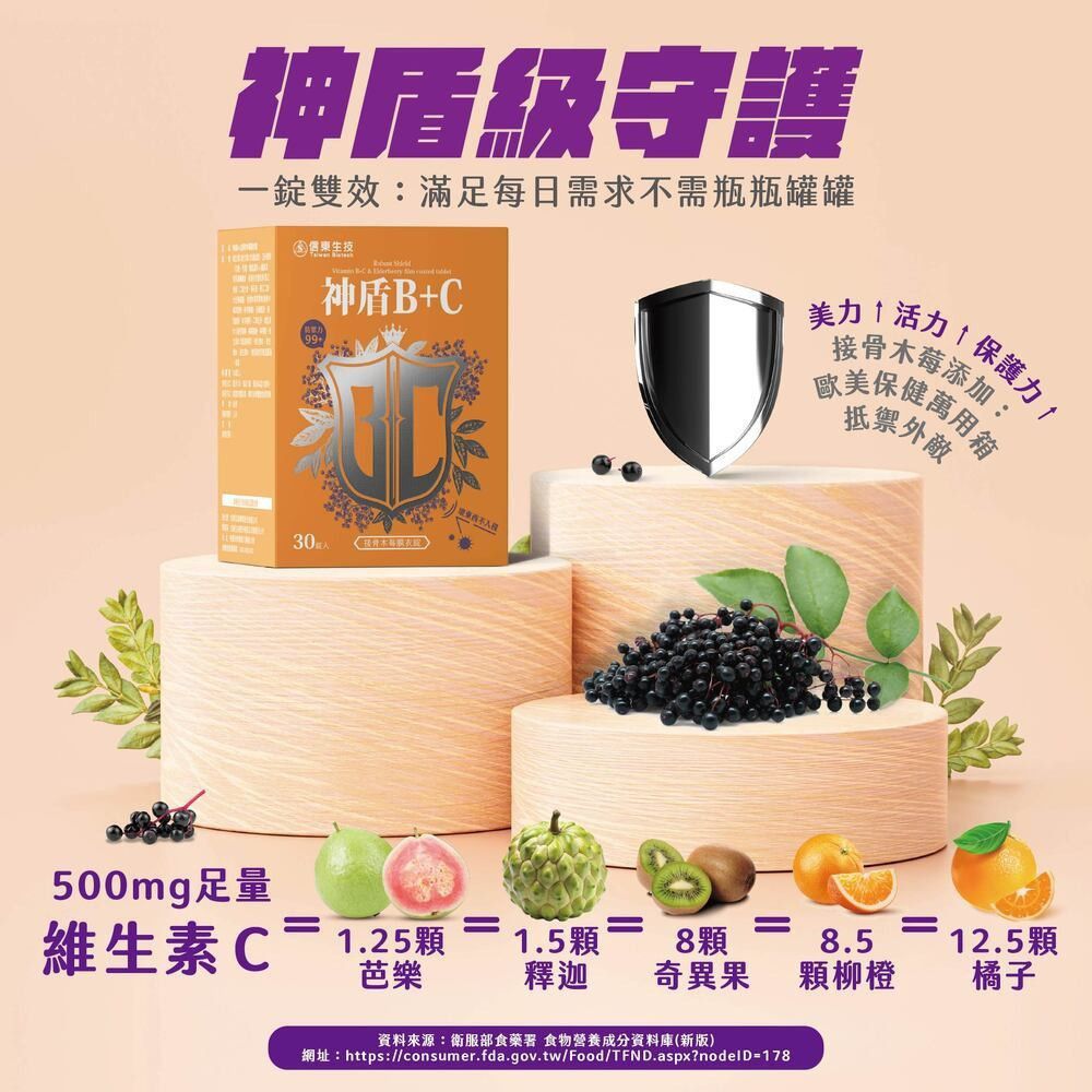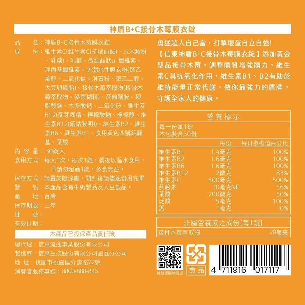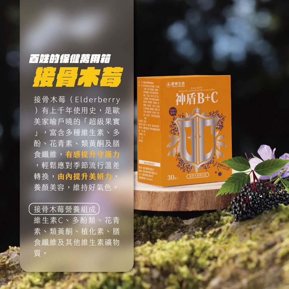 買1送1【信東生技】神盾B+C接骨木莓膜衣錠(30錠/盒)/下單出貨2盒