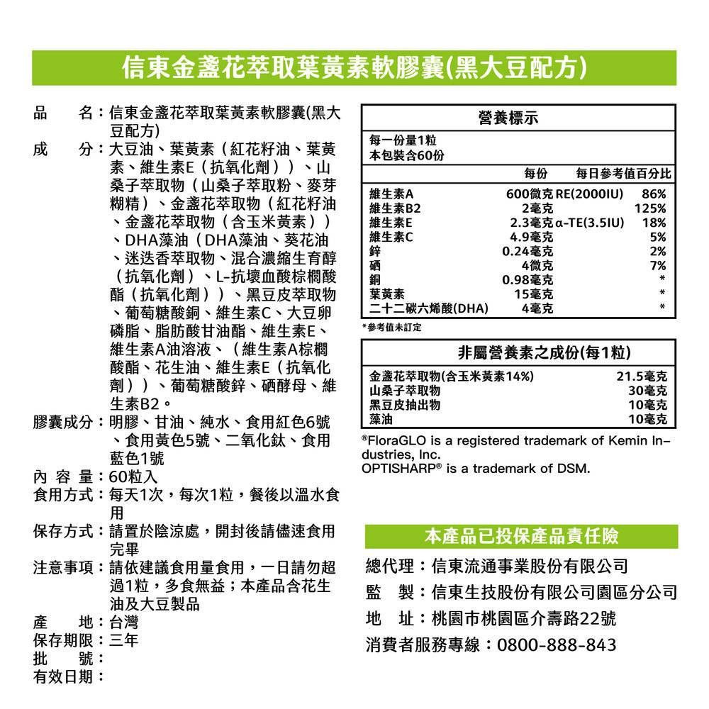 出清品【信東生技】金盞花萃取葉黃素軟膠囊(黑大豆配方)(60顆/盒)