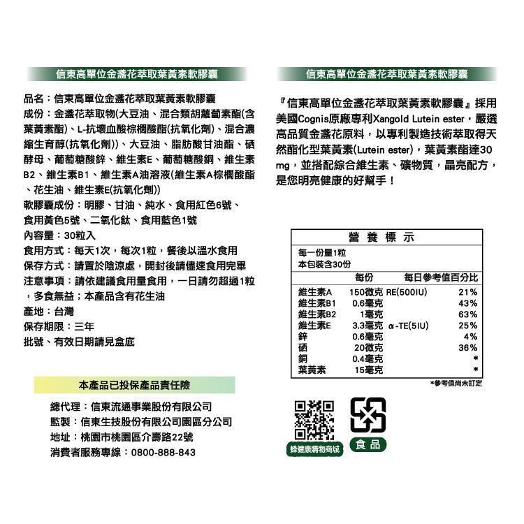 出清品【信東生技】高單位金盞花萃取葉黃素軟膠囊(30粒/盒)2入組 [效期2026.06.28]