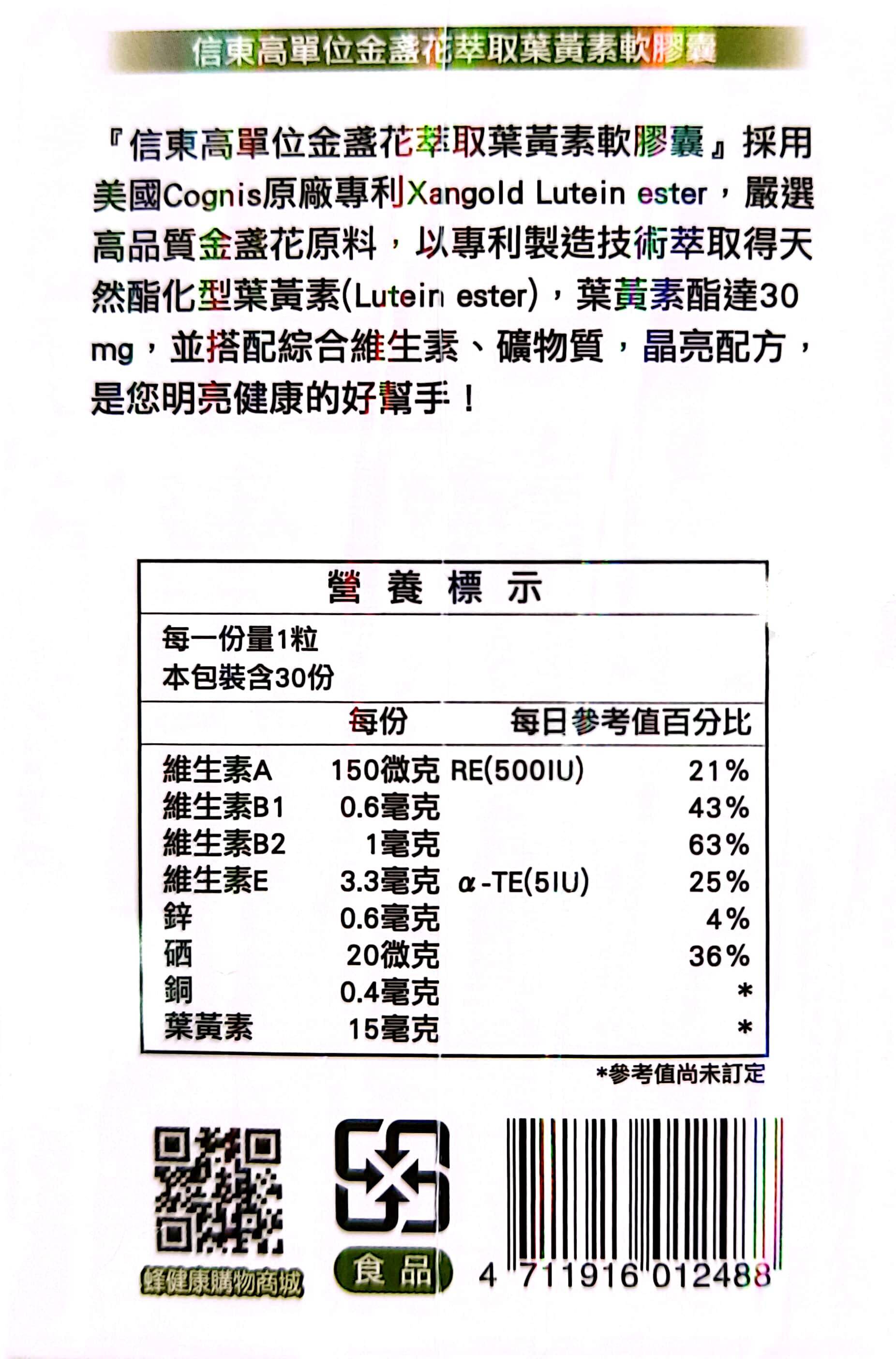 【信東生技】高單位金盞花萃取葉黃素軟膠囊(30粒/盒) [效期2026.06.28]